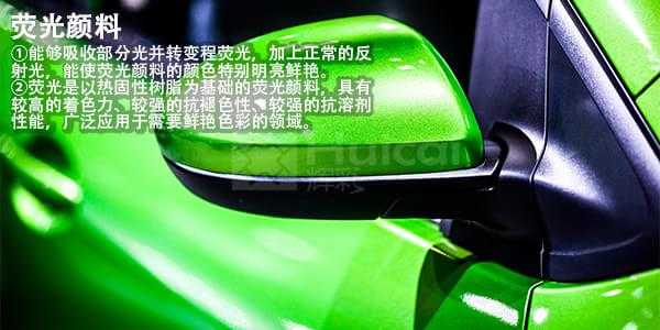 荧光粉与一般颜料不同,它可将吸收的部分光(包括紫外光)转变成波长更长的且与正常反射光色调相近的光——荧光,放射出来,这种荧光加上正常的反射光,使荧光颜料的颜色特别明亮和鲜艳。荧光颜料衬映在白色底层上才能充分显示出荧光效果,切忌与其他杂色相混。荧光颜料是以热固性树脂为基础的荧光颜料,具有较高的着色力、较强的抗褪色性、极细的粒径、及较强的抗溶剂性能,适用与制造油漆涂料、喷漆、考漆,曲面和凹板印刷油墨、丝网印刷油墨、纺织印染油墨、纸张油墨及需要鲜艳色彩的领域。