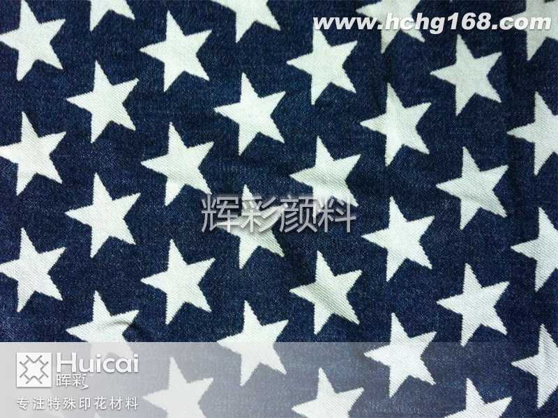 辉彩牛仔拔白浆是目前市场上拔白度和色拔鲜艳度较好的拔印浆,拔白度比意大利拔印浆效果好0.4-1倍以上。而且质量稳定,不产生异味气体,对网版及布无腐蚀性。对织物强力无明显损伤。