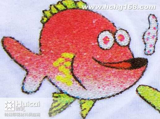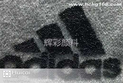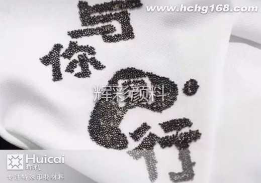 印花胶珠我们可以选择辉彩韩国胶珠,辉彩韩国胶珠, 规格为中号胶珠,大小为1.0~1.2mm可耐高温120~160。通过印花胶浆专用粘珠胶浆粘合到产品上,增强产品的立体效果和手感。